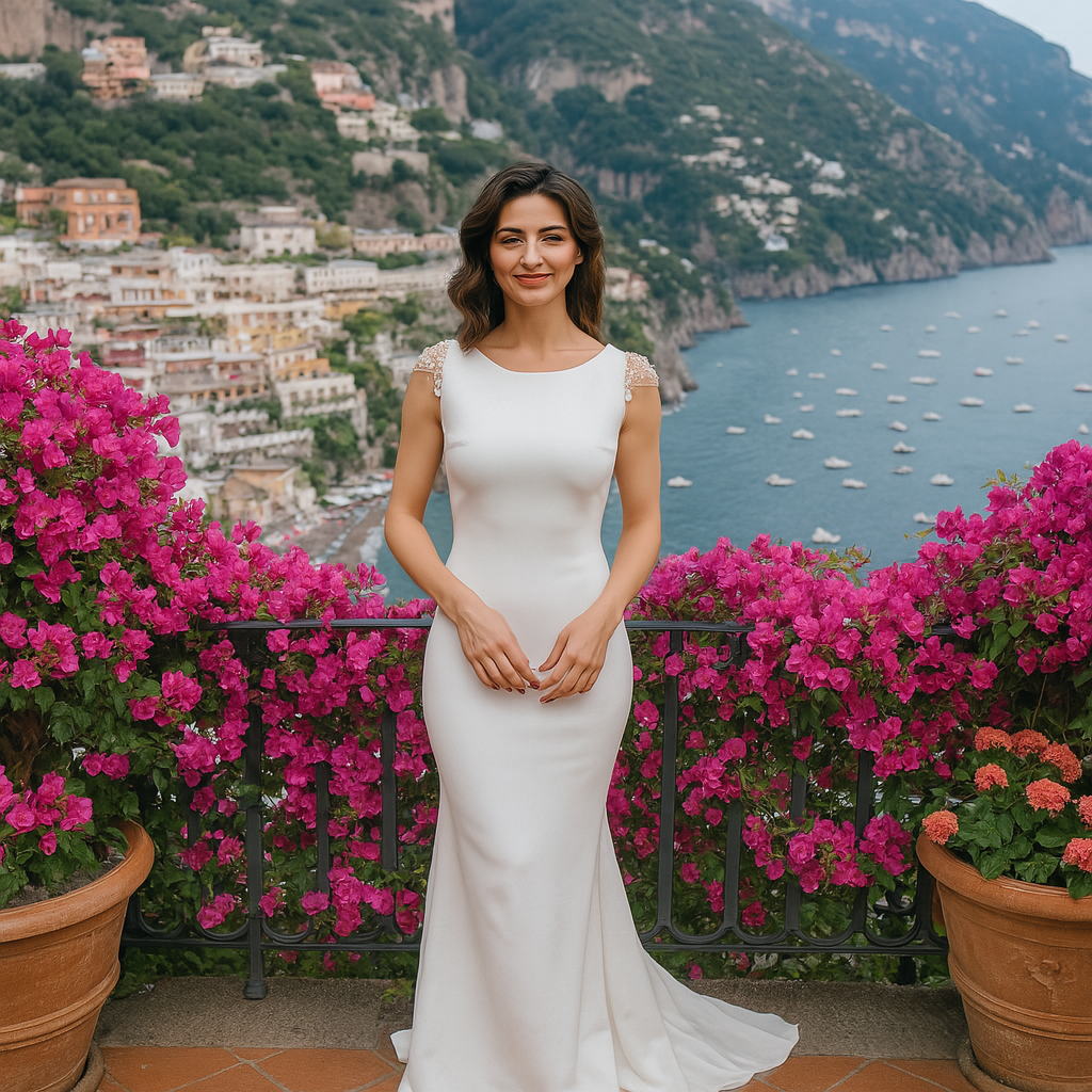 Questo abito a sirena è una vera opera d’arte che gioca con le linee pulite e la mesh con incrostazioni di perle per creare un look mozzafiato che lascia scoperti i punti giusti ed esalta la silhouette con uno strascico a cappella per un tocco di movimento in più.