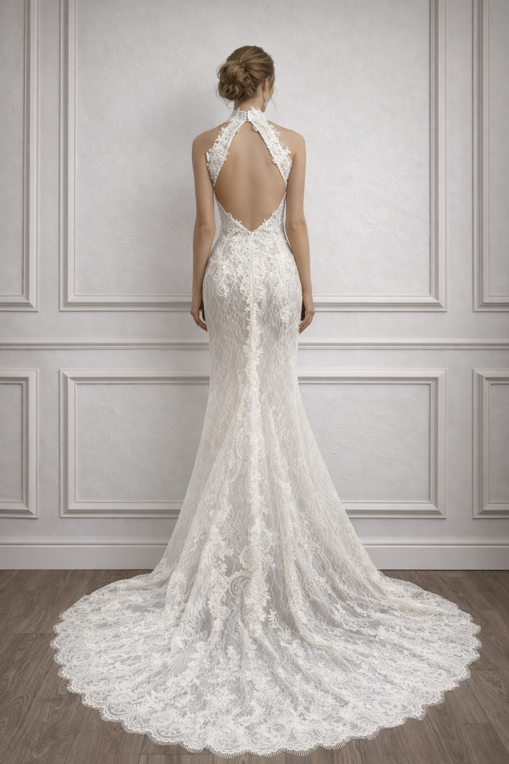 Questo abito da sposa sirena in pizzo ricamato è la scelta ideale per la sposa che desidera un look elegante, sensuale e altamente raffinato. Un modello couture che unisce artigianalità sartoriale e design contemporaneo, perfetto per matrimoni di lusso e cerimonie esclusive.