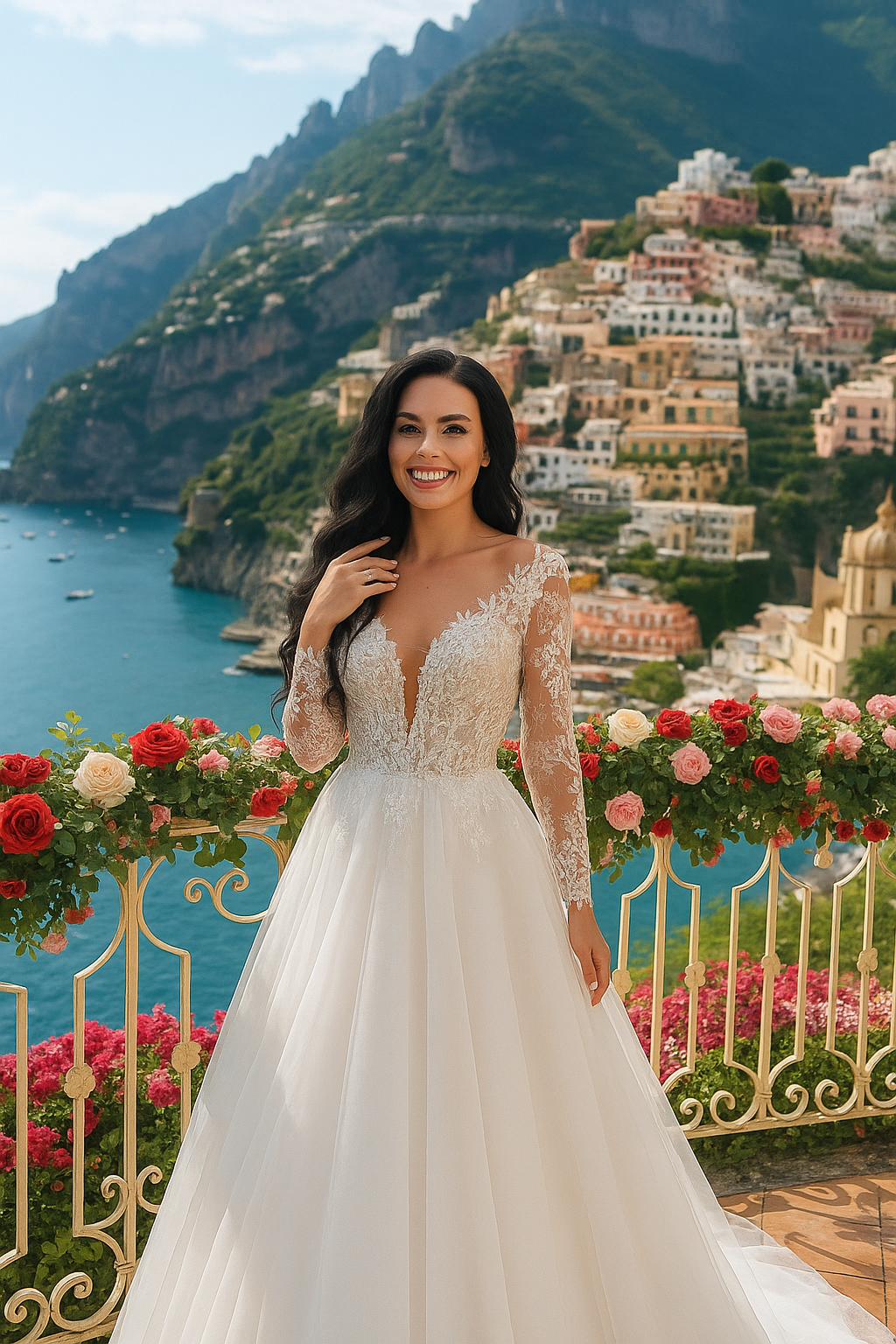 La chiusura della gonna è effettuata con una zip YKK, che garantisce una chiusura sicura e facile da usare. Inoltre, per quanto riguarda il busto, c'è la possibilità di richiedere una chiusura con lacci o bottoncini, a seconda delle preferenze della sposa.